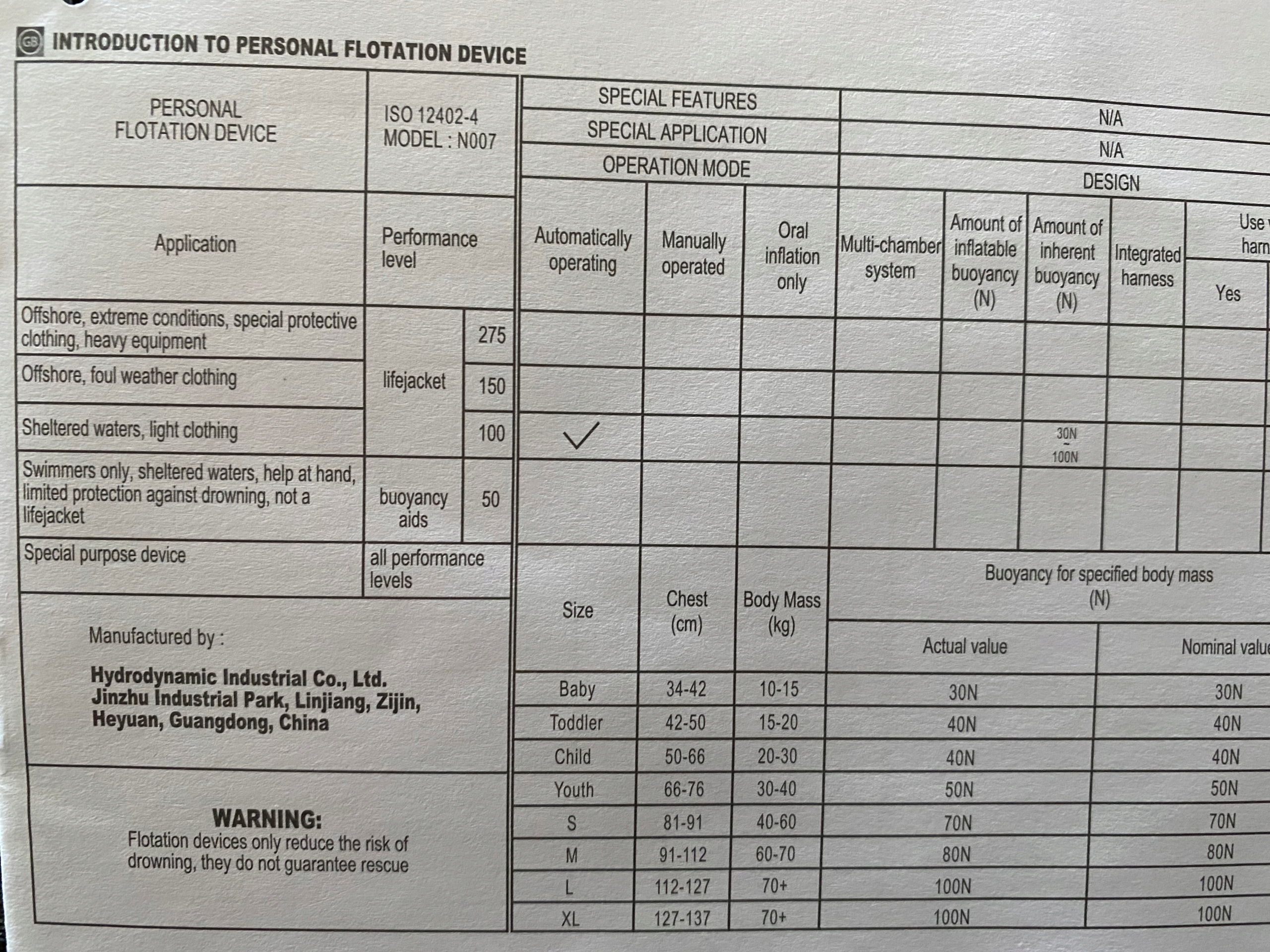 po utracie przytomności nie ulegnie zanurzeniu- Pasek z klamrą umożliwiającymi szybkie wypięcie