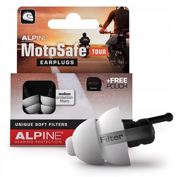 Zatyczki Alpine MotoSafe Tour tłumią szkodliwe dźwięki, a zastosowane w nich filtry zapobiegają odczuciu odizolowania. Dźwięki otoczenia, takie jak ruch uliczny, sygnały nawigacji, a także praca samego motocykla pozostają słyszalne.
